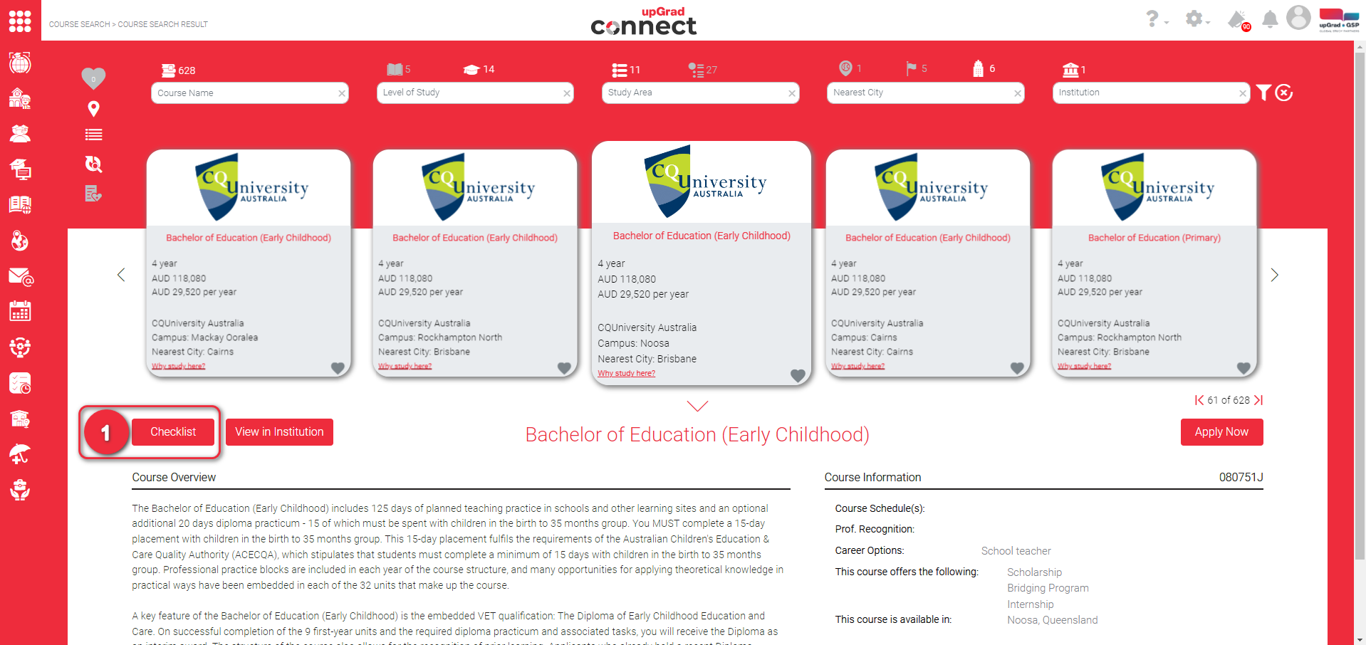 In the Course Details Page, click “Checklist” button