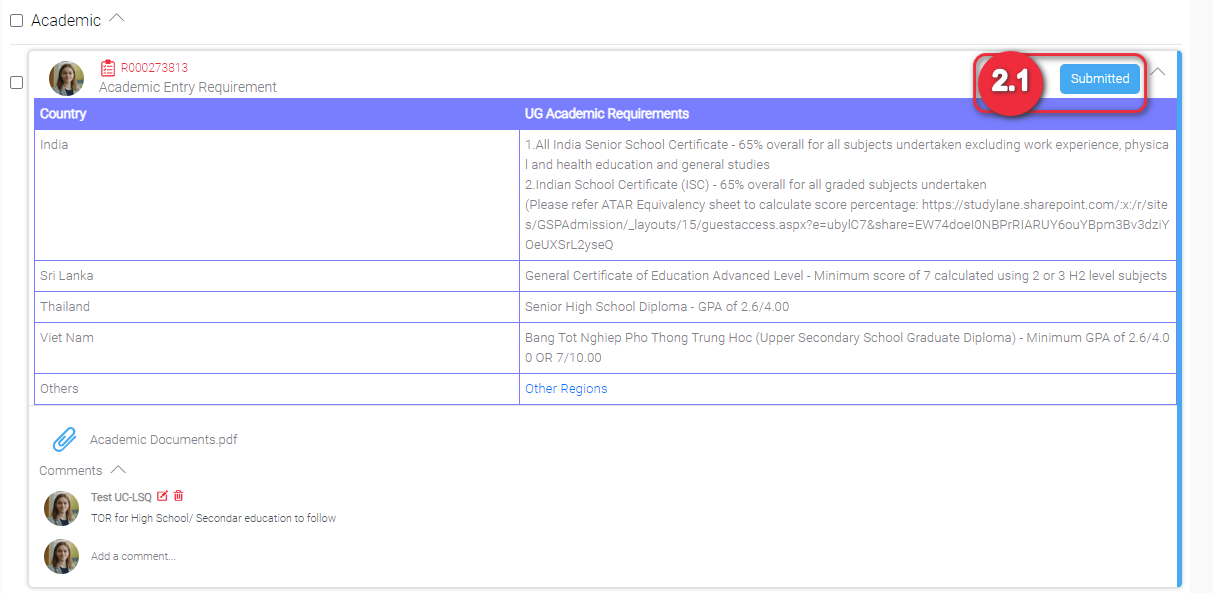 Image 2.4 You should be able to see the document/s linked to the requirement.