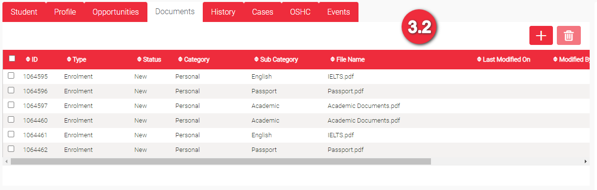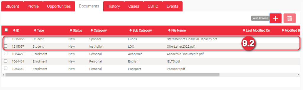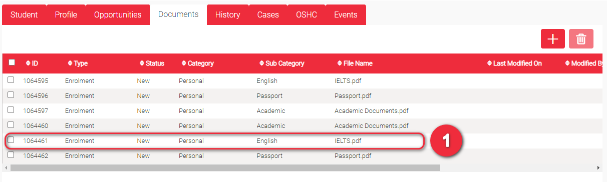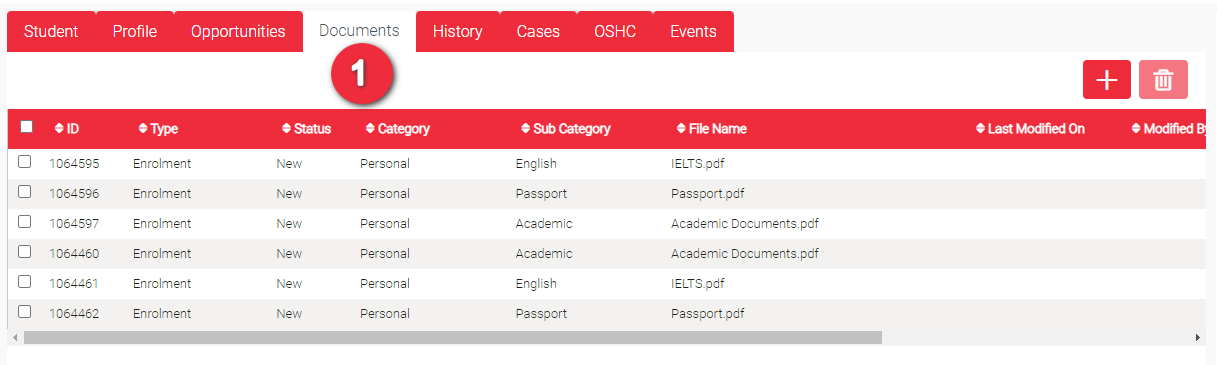 • Type – This is auto-generated depending which page you are at when you uploaded the document. These could be Student, Enrolment or Application