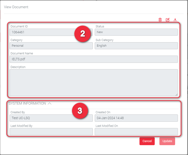 Click Update button to save your changes. You will then be redirected to the Documents List reflecting the saved changes.