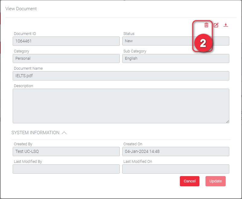 Click ‘Cancel’ button if you do not want to proceed in deleting the document.