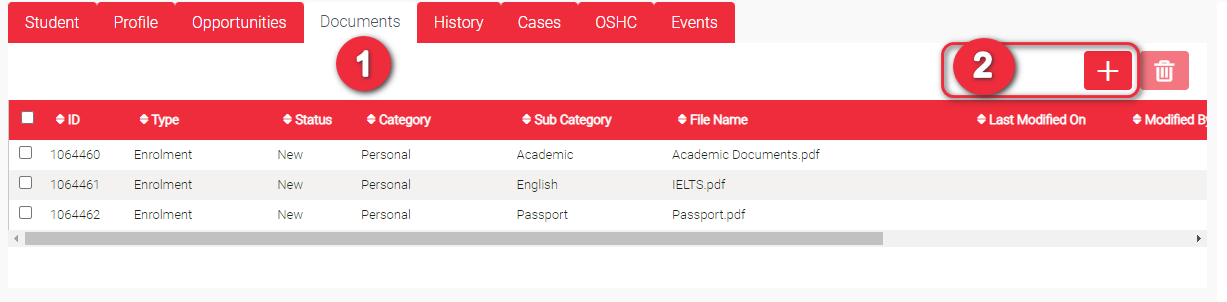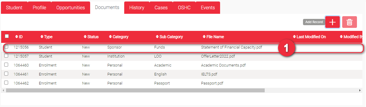 This is where you attach student related documents. When you attach a document, you have to identify its Category and Sub Category. The picklist for Sub Category depends on the selected Category. So, other users do not need to open the documents one by one in case they are looking for a specific document.
