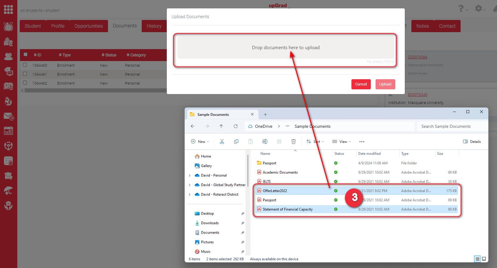 All the dragged documents will be displayed in the pop-up. Check if you have dragged the correct documents under the ‘Name’ column. The document name under this column has the same document name as to your computer/ device.