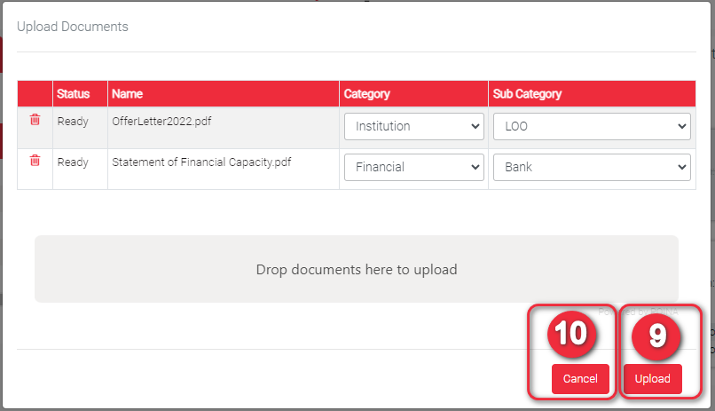 Click Cancel button if you do not want to continue uploading the document(s).