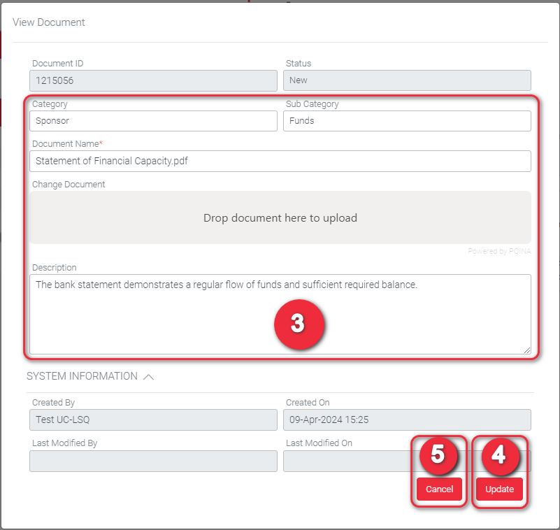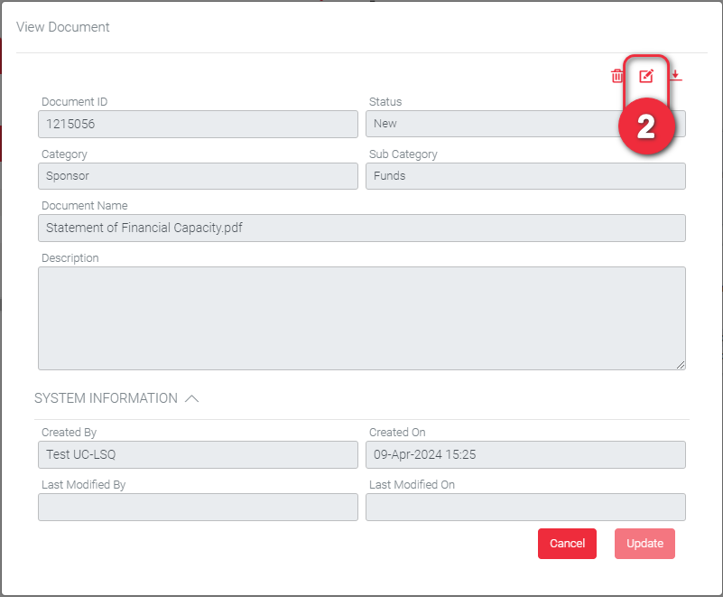 • Update document category, sub-category and description details