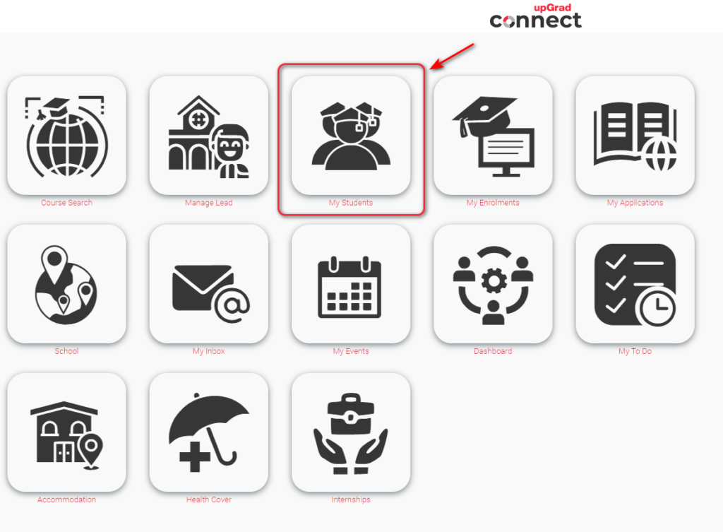 In the ‘Homepage Menu‘, go to the main object where you want to create or view notes, for instance, ‘My Students‘.